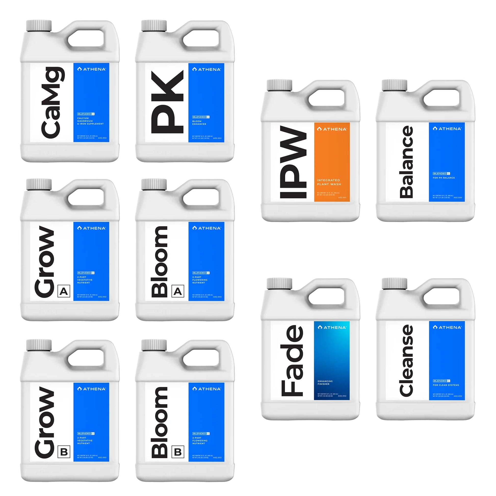 Erhalte mit dem Athena Bundle Komplett eine Rundumversorgung für Deine Pflanzen. Dieses Set beinhaltet zehn Flaschen mit jeweils 946 ml hochwertiger Nährstofflösungen: